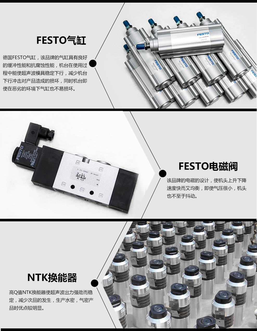 南方力勁機(jī)械有限公司是一家大型的超聲波設(shè)備研發(fā)、生產(chǎn)及銷售企業(yè),公司塑焊機(jī)事業(yè)部從事生產(chǎn)標(biāo)準(zhǔn)塑焊機(jī),2600W-3200W塑焊機(jī),4200W-5200W塑焊機(jī)等大功率焊接設(shè)備;15K、20K、28k、40K等精密型焊接設(shè)備,還有非標(biāo)塑焊機(jī)設(shè)備,雙頭塑焊機(jī)、四頭塑焊機(jī)、六頭塑焊機(jī)、中空板膠框焊接機(jī)、護(hù)欄管焊接機(jī)、熱板機(jī)、旋轉(zhuǎn)式熔接機(jī)、汽車門板焊接機(jī)、汽車儀表盤焊接、汽車遮陽(yáng)板焊接機(jī)、汽車燈焊接機(jī)、汽車保險(xiǎn)杠焊接機(jī)等,同時(shí)為客戶設(shè)計(jì)非標(biāo)自動(dòng)化塑膠焊接設(shè)備。